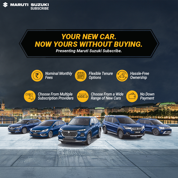Maruti Suzuki Subscribe enables all customers to enjoy driving their preferred Maruti Suzuki cars without having to deal with all the financial responsibilities that come with owning a car.All you need to do is opt for a monthly subscription plan at a fixed monthly fee, which includes the routine maintenance and insurance costs, and choose a flexible tenure. At Rajalakshmi in, , Chennai, all Hatchback, Sedan, SUV, the MUV models line-up includes Baleno, Invicto, EVitara, Jimny, Ciaz, Ignis, Fronx, Grand Vitara, XL6. Here, you will enjoy Maruti Suzuki Subscribe benefits such as: