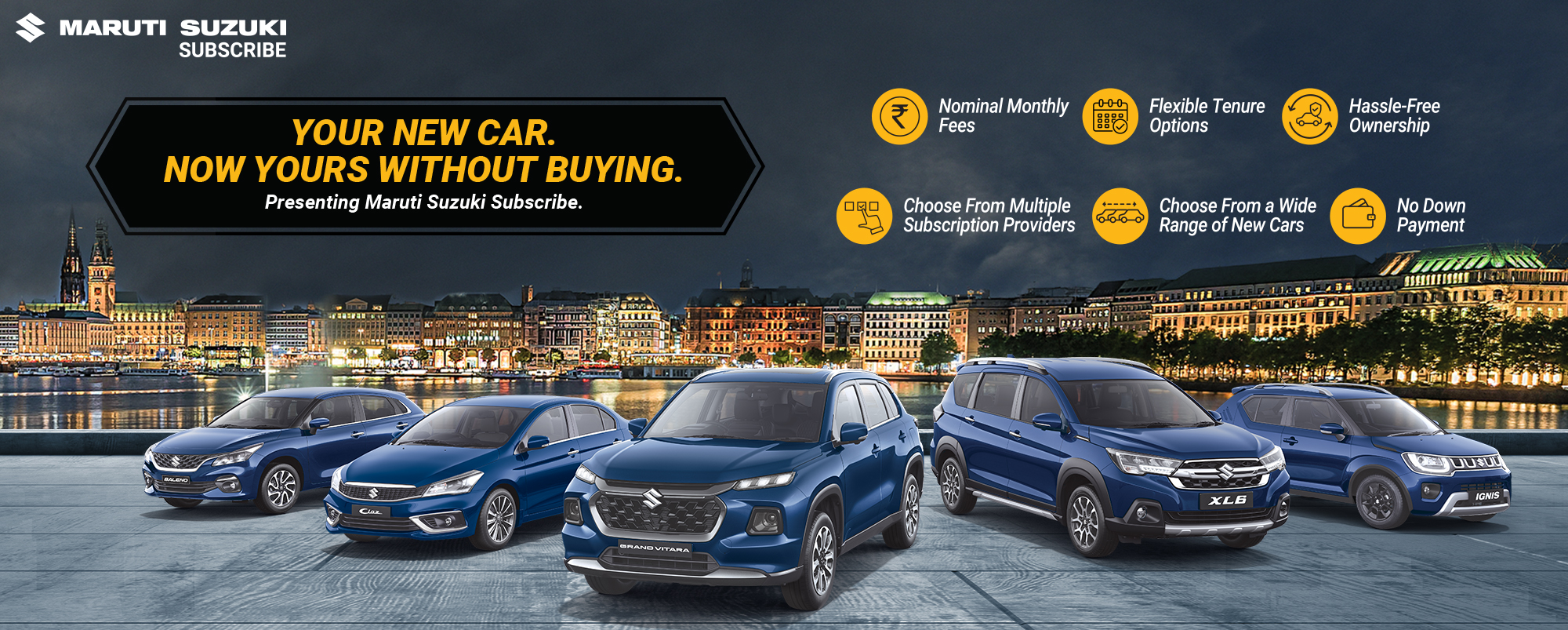 Located in Chennai, Rajalakshmi offers a plethora of options of Nexa cars for Maruti Suzuki Subscribe. You can choose your desired Maruti Suzuki car and drive it home at nominal monthly fees for a variety of flexible tenure periods. Whether you prefer Hatchback, Sedan, SUV or even MUV you are sure to find it at Rajalakshmi, with an easy Maruti Suzuki Subscribe plan.